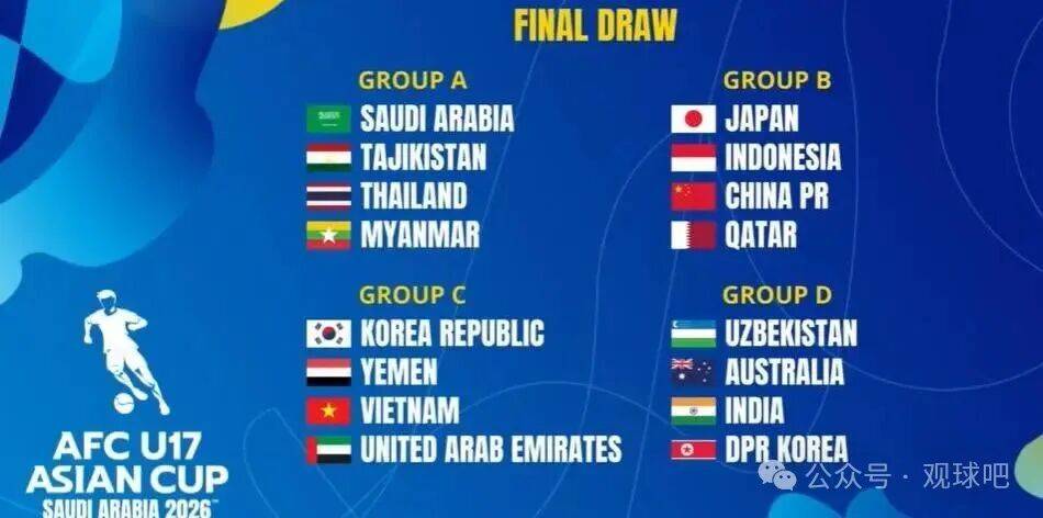 但抽签这事儿,向来不是靠脸凑运气。2月12日,亚足联总部分组仪式直接把中国U17安排进B组。