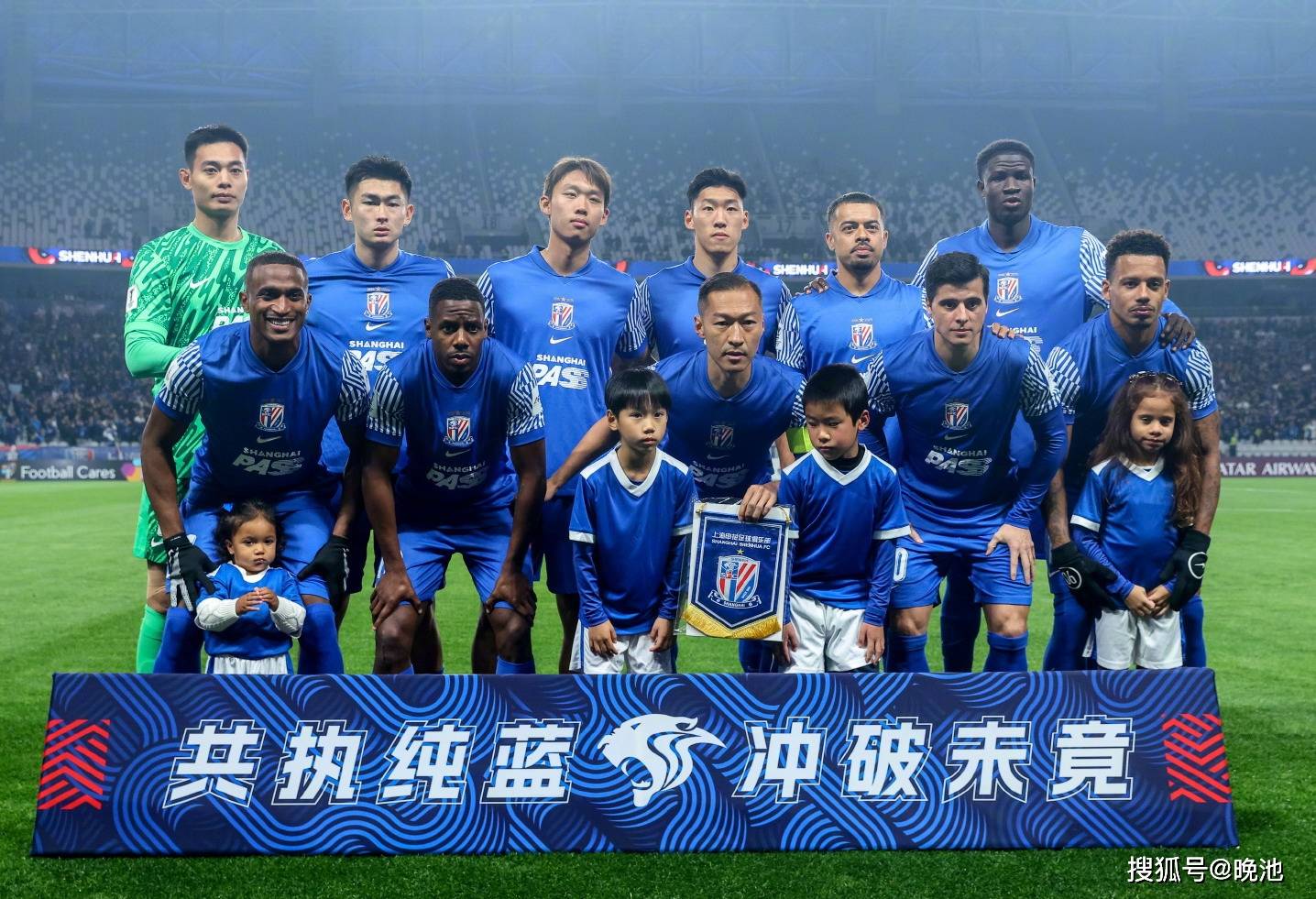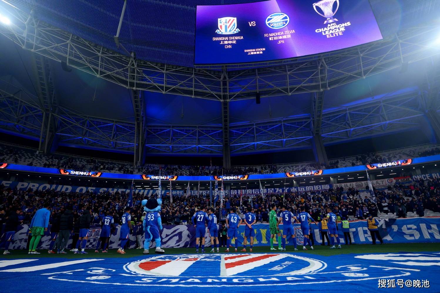 上海申花派上了6名外援(来自中国香港的陈晋一因为会籍不同,在亚冠精英联赛中被视为外援)和众多入选过国足大名单的国脚组成的首发阵容。