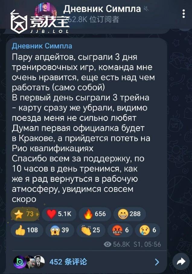 S1mple通过个人Telegram频道向粉丝分享了最新进展。他表示,队伍已经完成了三天高强度合练,整体氛围和状态让他非常满意,虽然仍有不少细节需要打磨,但大家的投入度和执行力都让他感到振奋。重新回到系统化训练和团队协作的环境,也让他找回了久违的职业节奏。