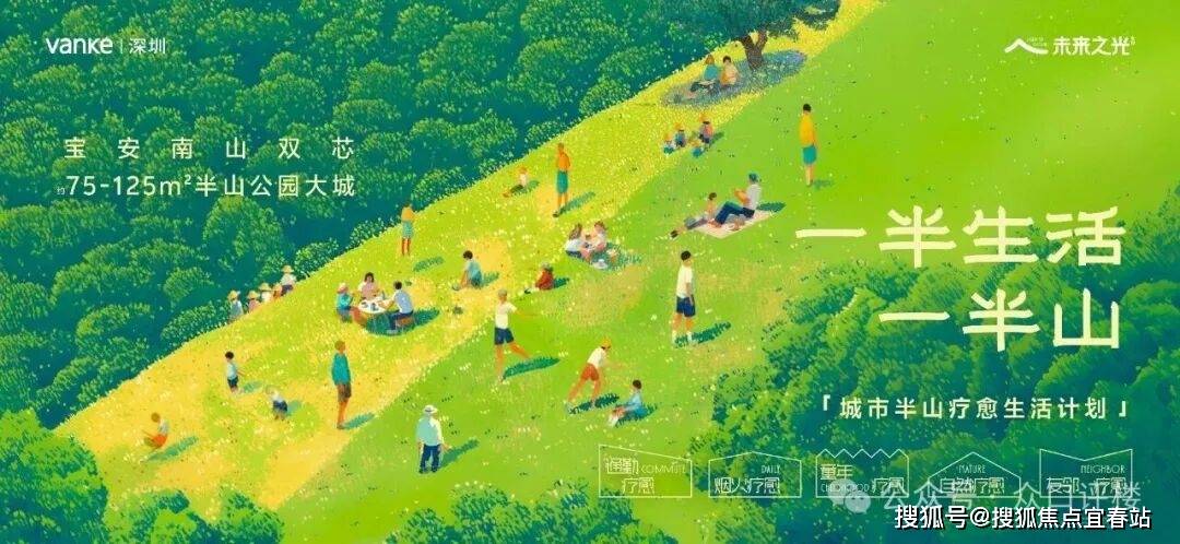 城市半山疗愈生活计划:结合业主真实需求,未来之光推出「城市半山疗愈生活计划」,规划了一条疗愈生活动线,构建“通勤、烟火、童年、自然、友邻”五大场景模块,旨在串联生活的场景来给业主提供松弛疗愈的山居生活,随时感受自然接触的长效治愈力。升级半山屿组团景观,以八重疗愈空间为载体,营造松弛山居体验。