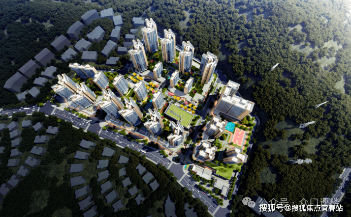 社区配套:篮球场、网球场、羽毛球、游泳池、儿童游乐场地、老年人日间照料中心、社康服务中心、亲子运动、康养闭环的全龄化社区空间;