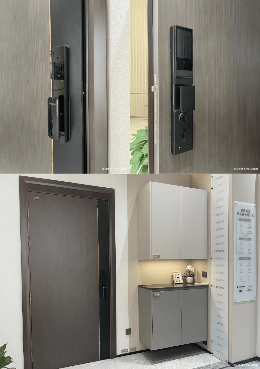 进门就感受到尊崇:安全坚固的春天木门、七种开锁方式的智能锁、环保等级达到日本最高F4星标准的玄关柜(日门、大建品牌),仪式感满满。