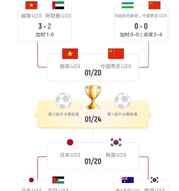 这场日韩对决的胜者,将在决赛中等待中国与越南比赛中的胜者。如果中国队能够晋级决赛,很可能将与日本队争夺冠军。